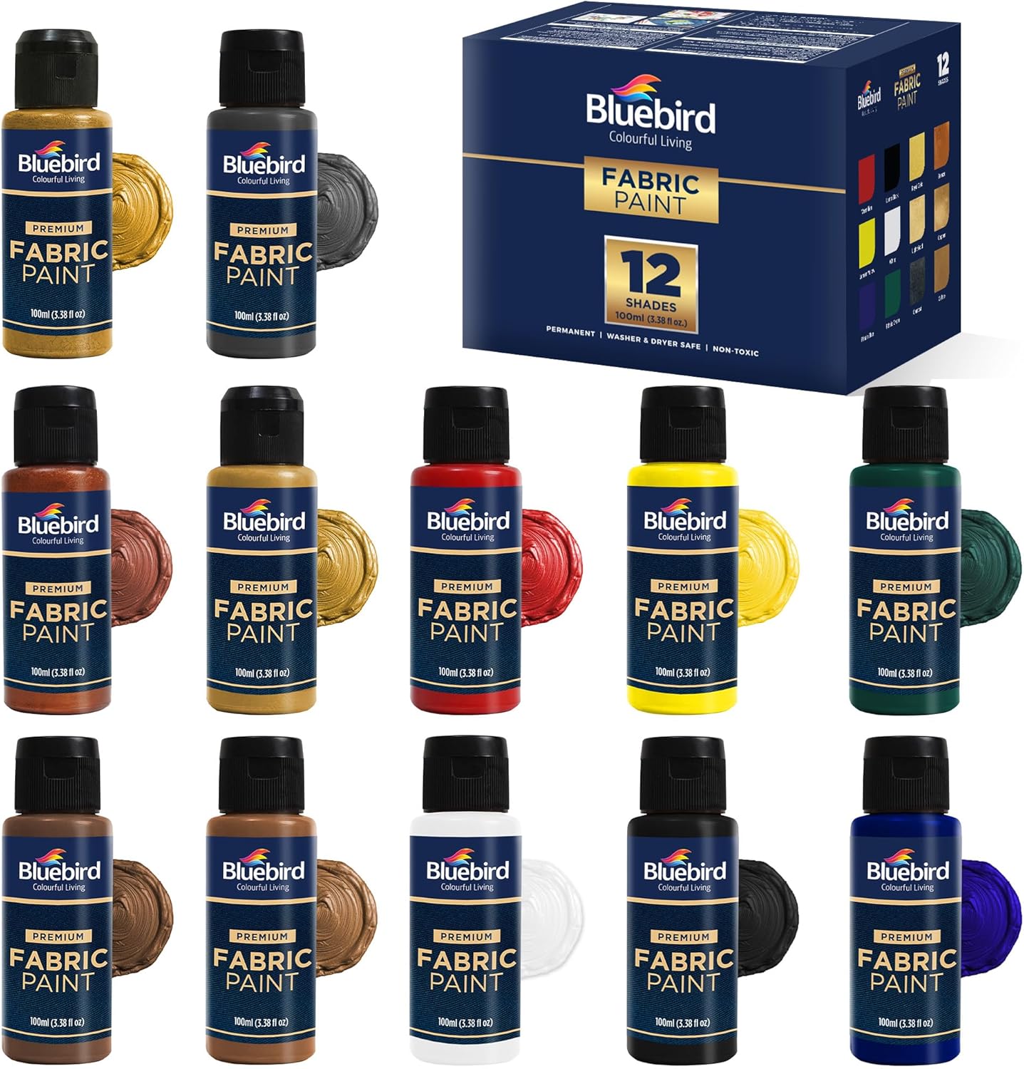 PERMANENT & WASHER SAFE: Easy to blend and cover, stay permanent and won’t crack or peel, durable enough to hold up extensive wear and repeated washes in the washing machine and dryer. Bluebird fabric paints are ready to use, do not need extra textile medium or heating.