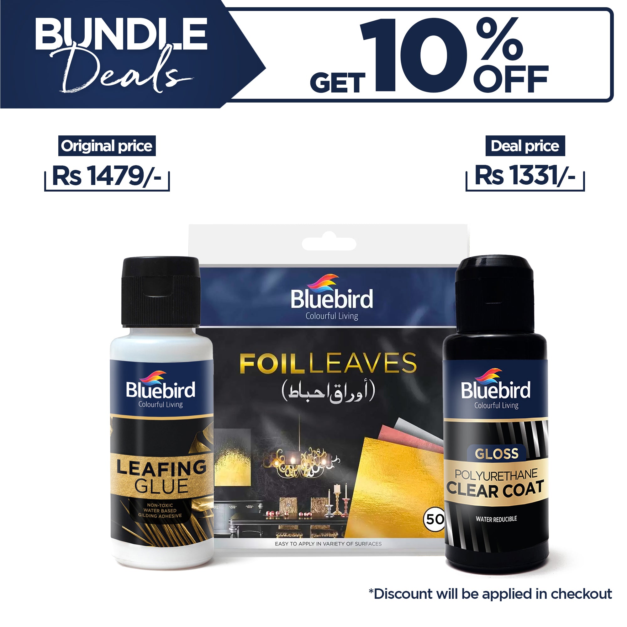 Leafing Glue + Gold Foil Leaves (50 Sheets) + Clear Coat Bundle