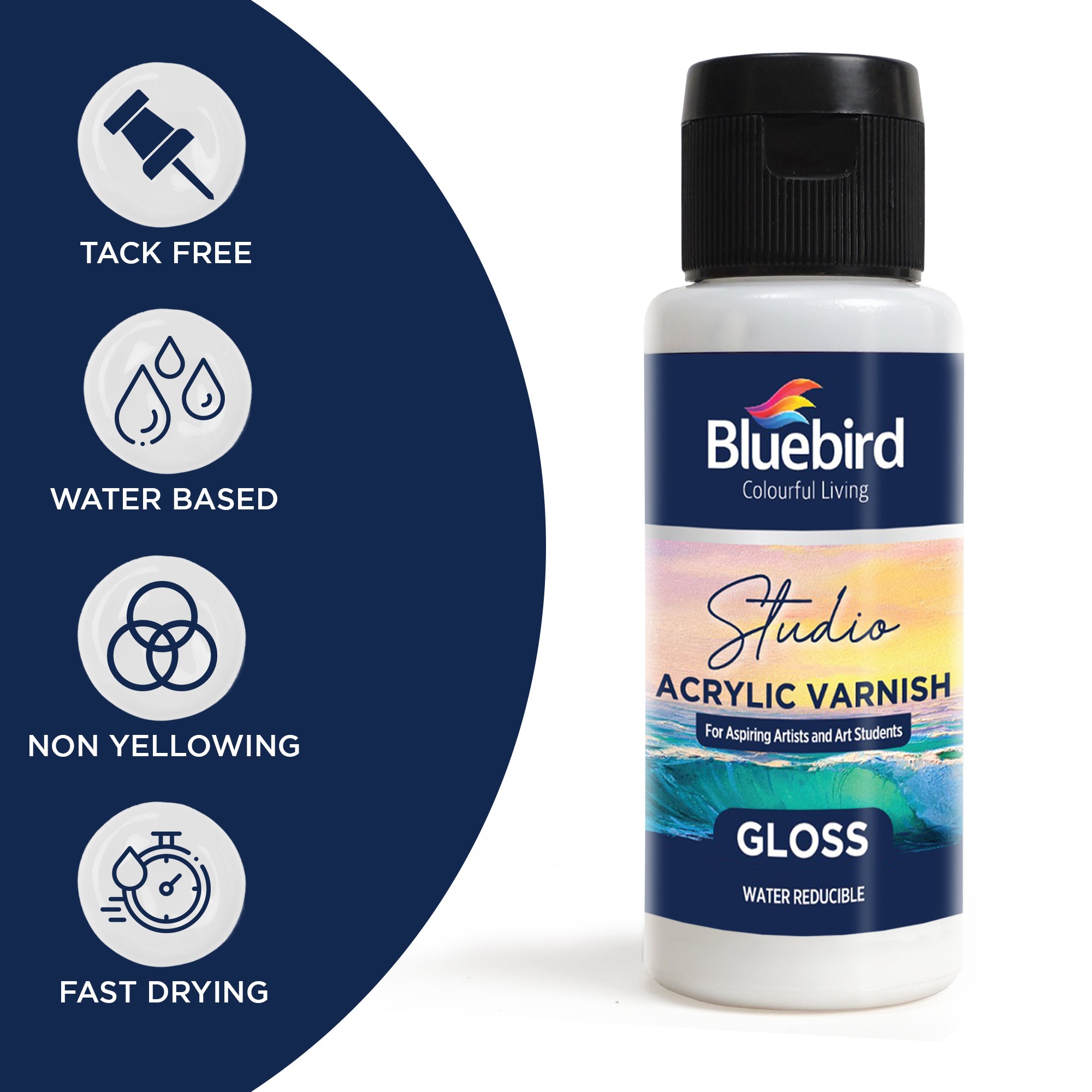 Bluebird Studio Acrylic Varnish is an acrylic-based protective sealant, meticulously formulated to shield both acrylic and oil colours from dust and scratches. Designed specifically for indoor use, this varnish ensures your masterpieces remain pristine and untarnished.